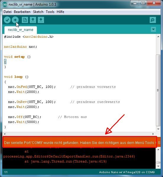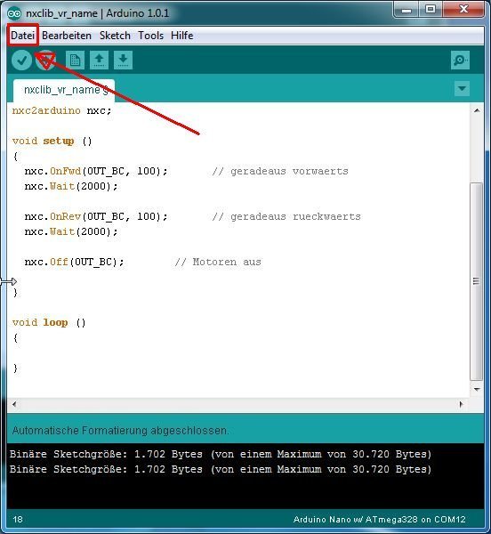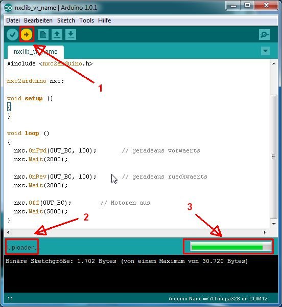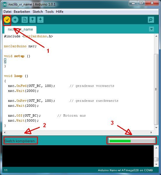 Erstes nxc2arduino-Programm